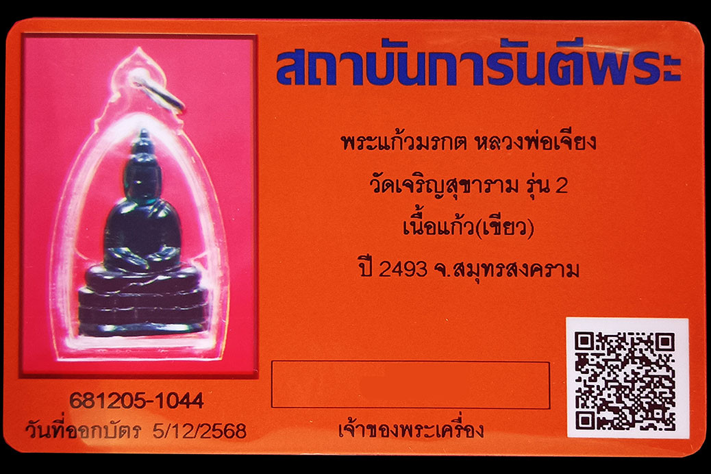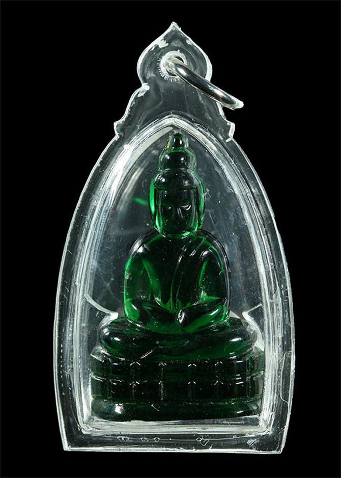 หายาก ผลิตจากประเทศญี่ปุ่น พระแก้วมรกต หลวงพ่อเจียง วัดเจริญสุขาราม รุ่น 2 เนื้อแก้ว(เขียว) ปี 2493 จังหวัด สมุทรสงคราม