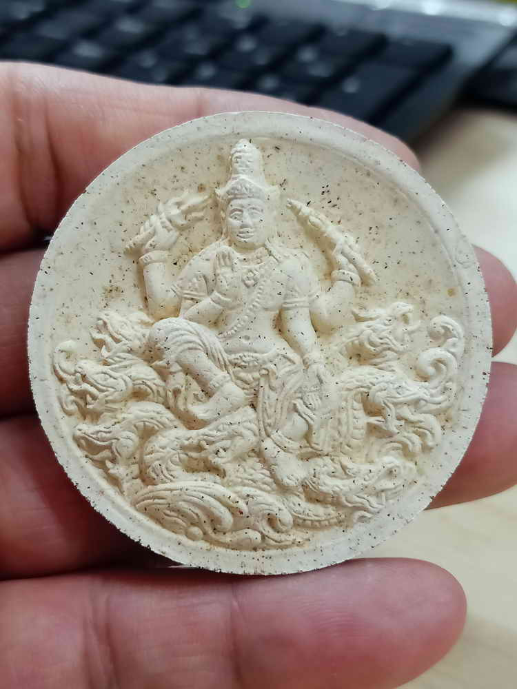 ซึ่งรูปแบบนี้ท่านได้ทำมาจากพระผงเนื้อดินเผา อายุกว่า 1200 ปี ด้านหน้าเป็นองค์จตุคาม-รามเทพ