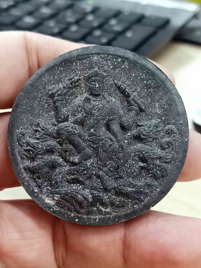ซึ่งรูปแบบนี้ท่านได้ทำมาจากพระผงเนื้อดินเผา อายุกว่า 1200 ปี ด้านหน้าเป็นองค์จตุคาม-รามเทพ