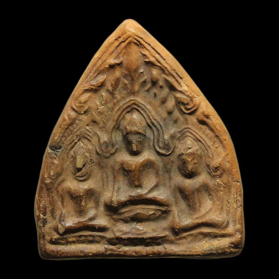 พระสาม หลวงพ่อกวย ปี 2500 เนื้อดิน วัดโฆสิตาราม จ.ชัยนาท เป็นพระพิมพ์โบราณ ยุคต้น หาชมยาก