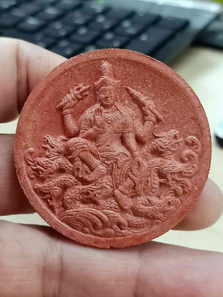 ซึ่งรูปแบบนี้ท่านได้ทำมาจากพระผงเนื้อดินเผา อายุกว่า 1200 ปี ด้านหน้าเป็นองค์จตุคาม-รามเทพ