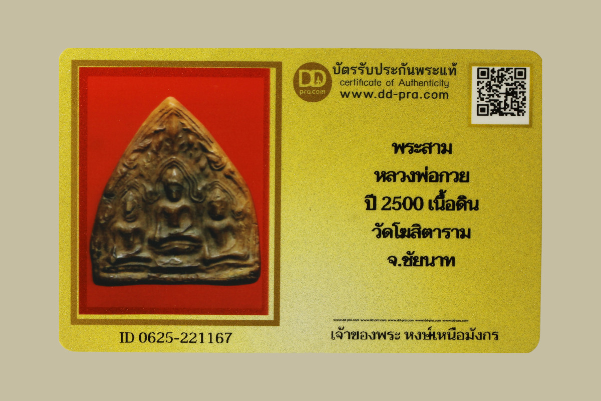 พระสาม หลวงพ่อกวย ปี 2500 เนื้อดิน วัดโฆสิตาราม จ.ชัยนาท เป็นพระพิมพ์โบราณ ยุคต้น หาชมยาก