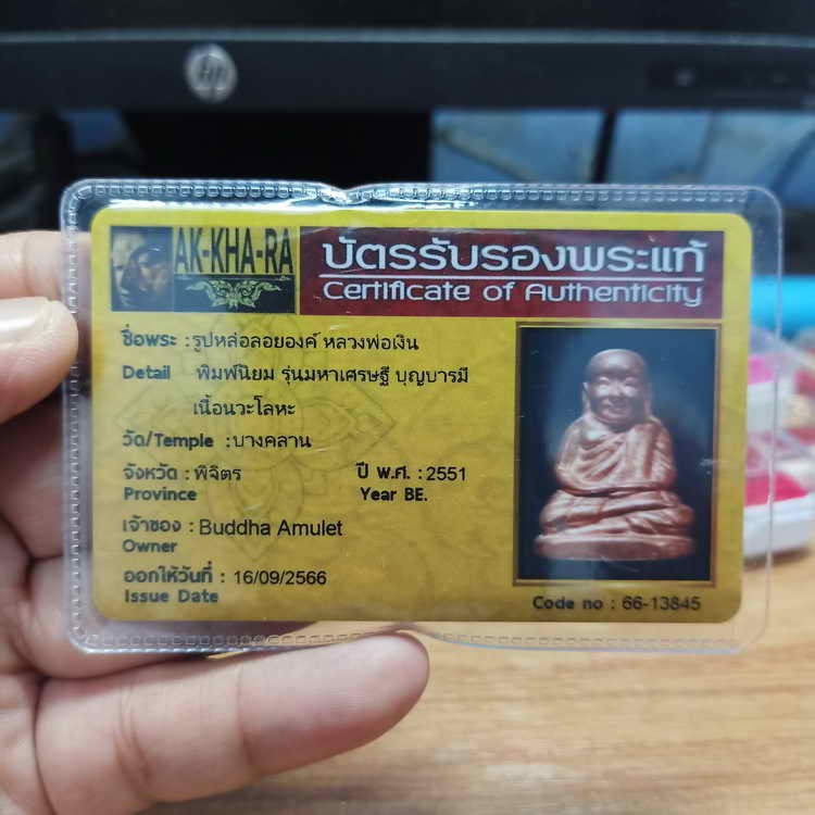 2-104 วัดใจ 400 พร้อมบัตร รูปหล่อลอยองค์ หลวงพ่อเงิน พิมพ์นิยม รุ่นมหาเศรษฐี บุญบารมี วัดบางคลาน ปี 2551 เนื้อนวะโลหะ พระพร้อมบัตรรับประกัน
