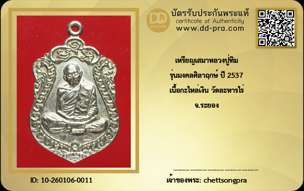 รุ่นมงคลศิลาฤกษ์ ปี 2537 เนื้อกะไหล่เงิน วัดละหารไร่ จ.ระยอง